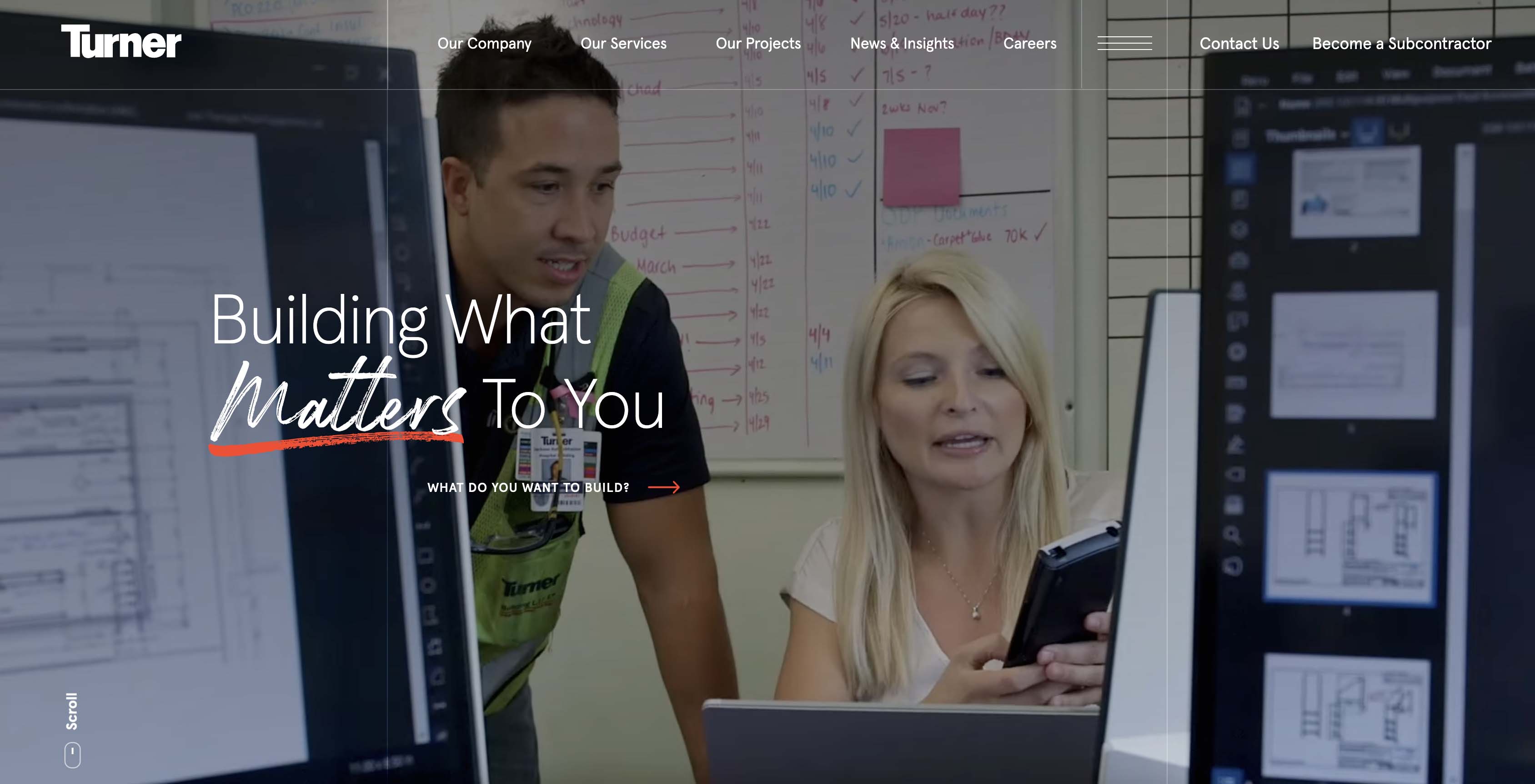 Turner’s website redesign was a complex project that required balancing the specific needs of regional offices with the broader corporate narrative, covering Turner's values, services, projects, and career opportunities. Central to the redesign was a strategic focus on image selection, aiming to create a bold, innovative design that showcases Turner’s work and leaves a lasting impact on visitors