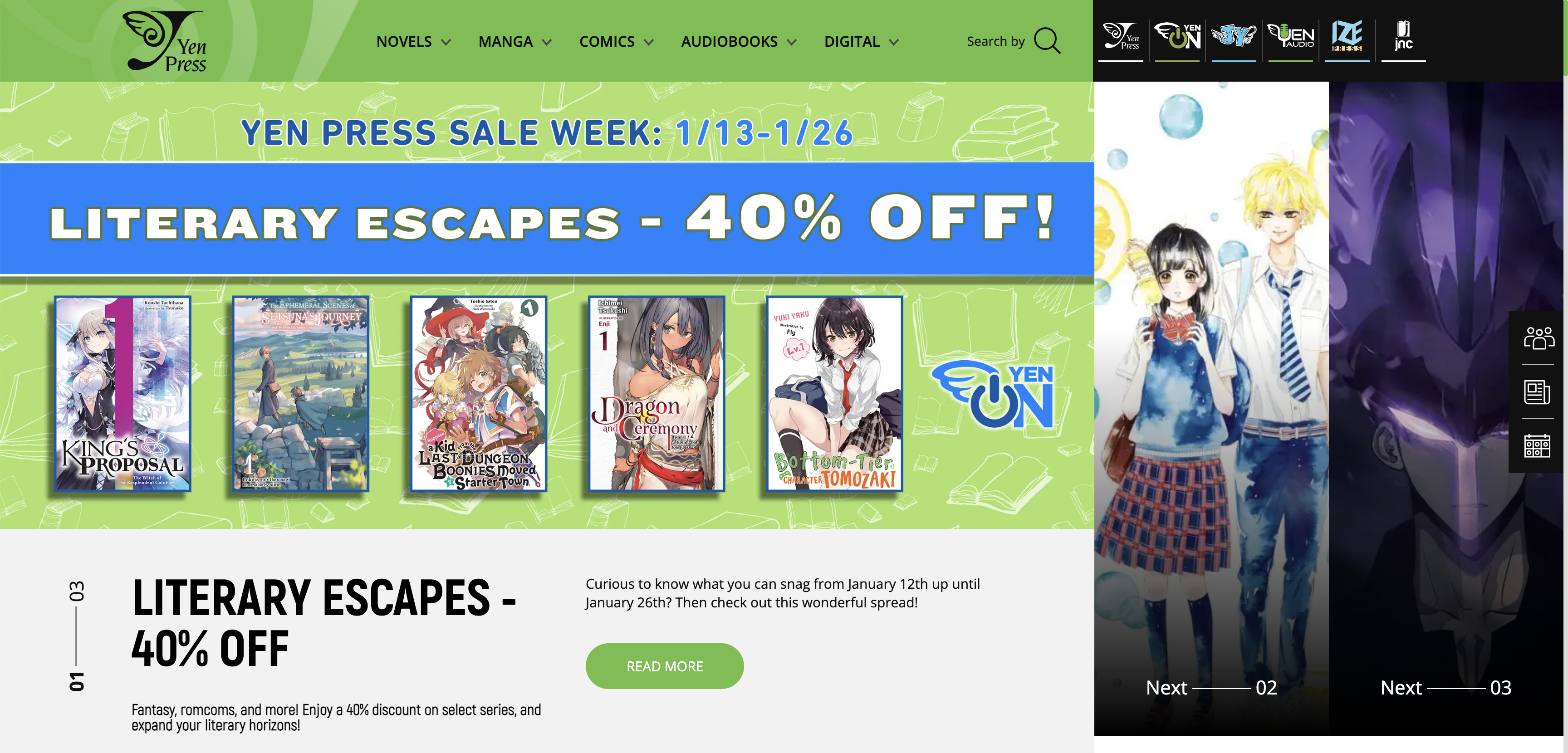 To meet this goal, we enhanced the Yen Press website by integrating Shopify, enabling a smooth and intuitive shopping experience for customers. With this new functionality, visitors can browse and purchase books directly from the publisher's website without relying on external sellers. Thousands of titles are available at the click of a button, creating a fast and user-friendly shopping experience.
