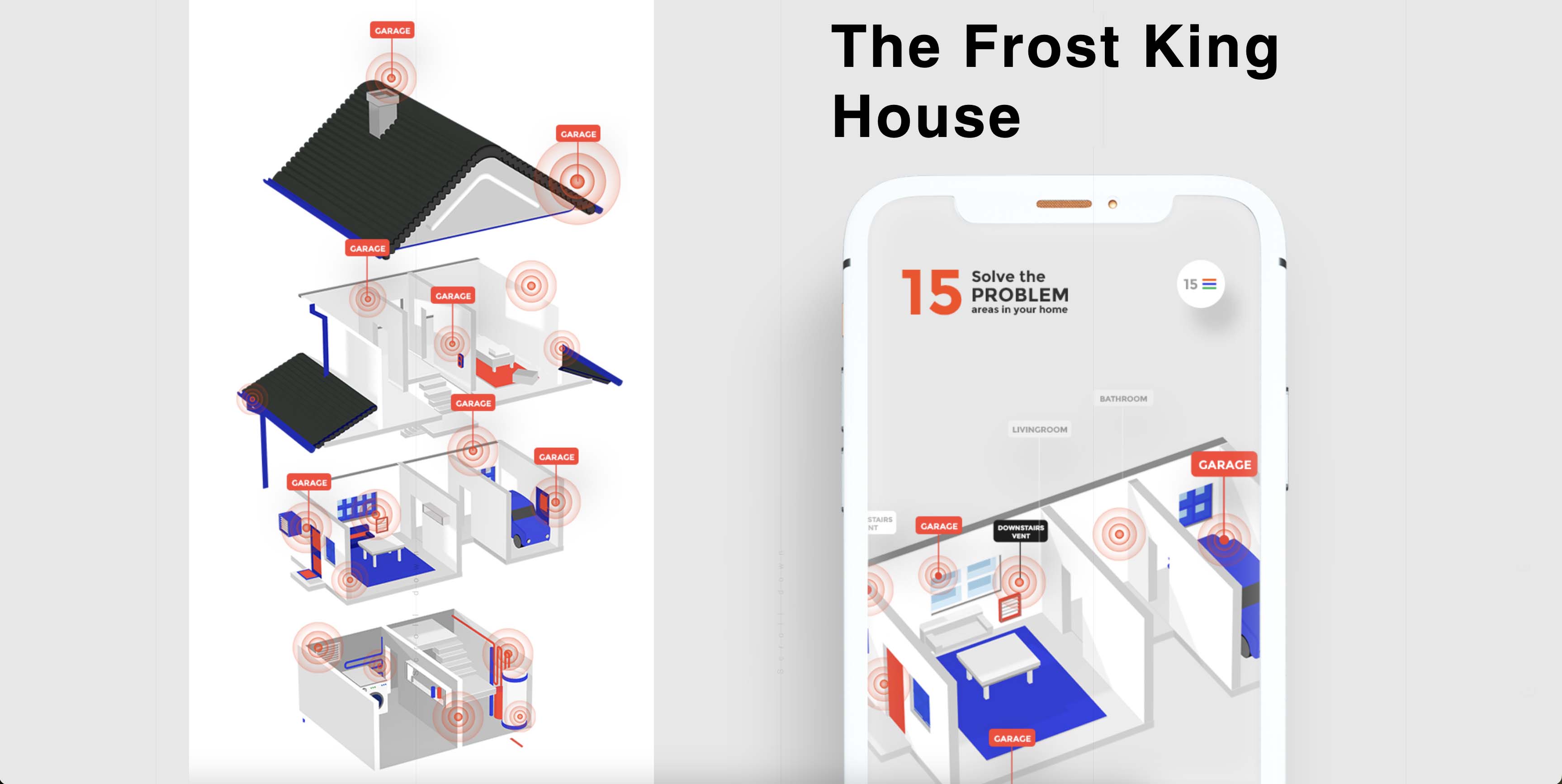 Another example is The Frost King House, an award-winning interactive tool we designed for homeowners. Knowing that Frost King’s customers actively seek out “how to” content and practical advice, we created a virtual home they could explore. Each room pinpoints common energy inefficiencies, paired with quick DIY tips. This experience doesn’t just present information—it invites the user into a problem-solving journey across the home. It’s educational, spatially interactive, and deeply user-driven.