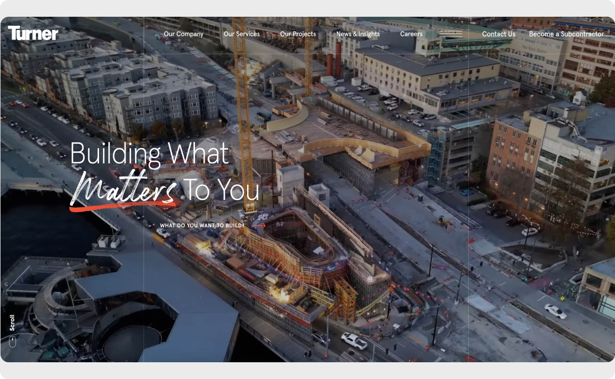 Through extensive research and employee interviews, we gained deep insights into the exceptional individuals and deeply ingrained corporate values at Turner. This exploration inspired us to create the tagline "Building what matters to you," perfectly capturing Turner's essence.